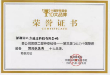 2018年1月7日,深圳市八方通達科技有限公司榮獲“第三屆中國警用裝備十大品牌”,這是八方通達第三次獲得此獎項。