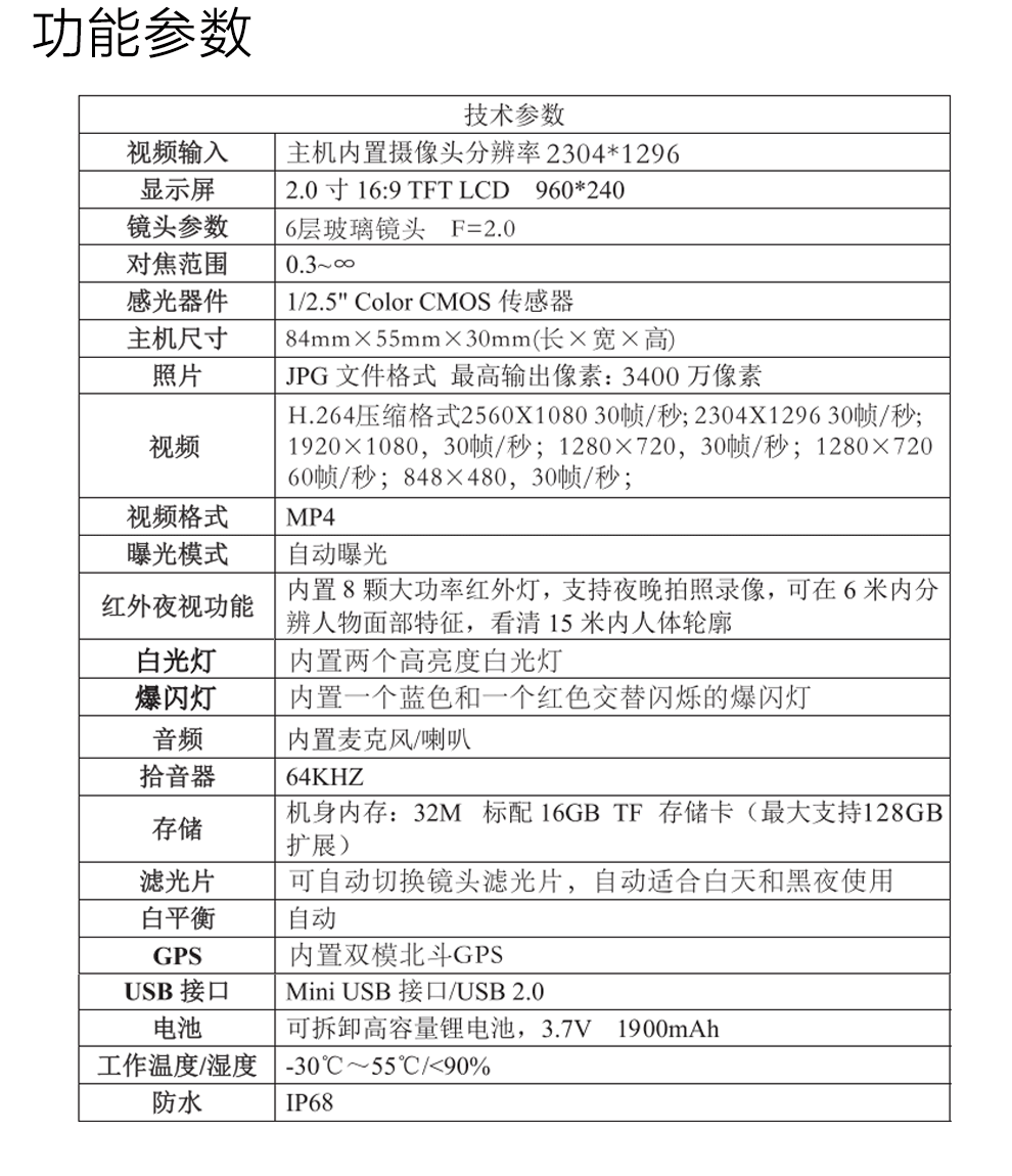 產品功能:紅外夜視;激光定點;GPS;防水;循環錄影